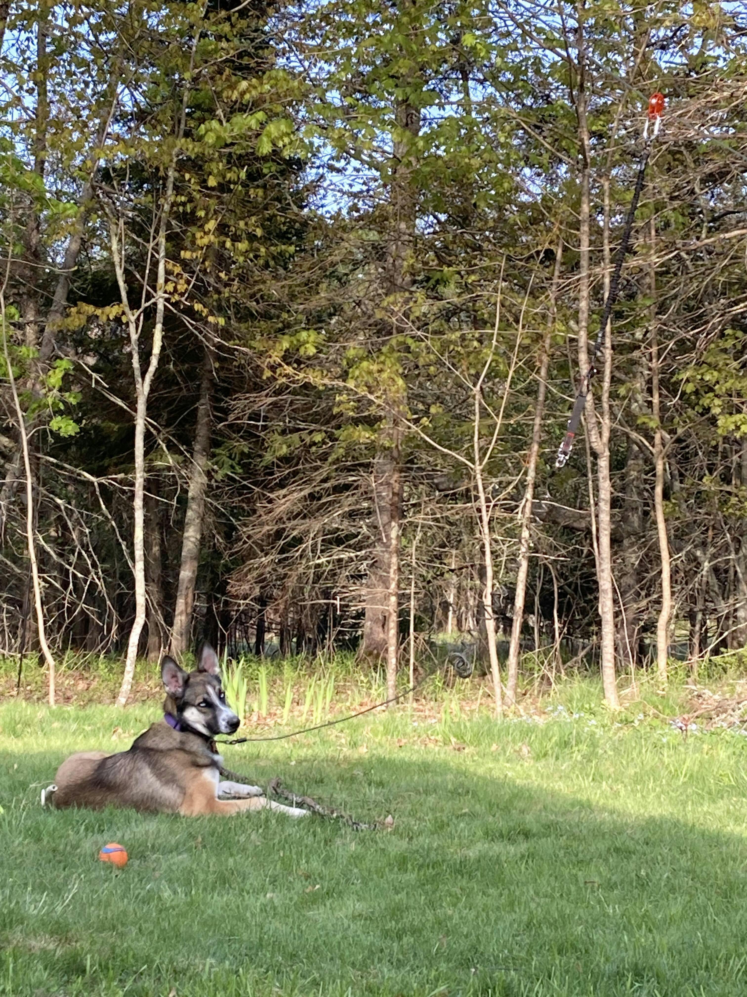 LOVE our Rover Roamer! We could not afford to fence our yard for our 66 lb shepherd/husky puppy. The Rover Roamer gets her outside quickly and safely for both bathroom breaks and getting the zoomies out, as well as safe playtime with us. She plays well with the neighbour’s dog too, without the risk of chasing local deer and getting lost. Great product, well-designed, well-made system and parts, with clear instructions. Thanks!!!